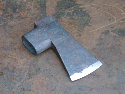 On July 12, 2015 by jaustinAfter some preliminary research on forging dimensions (stock size and fullering-layout) I began test-forging Swedish axe eyes using the information I’d gathered from Mattias Helje. The first order of business is to learn to forge the eye since it is used on several types and sizes of traditional Swedish axes. The axe below represents my second try to form the eye and my first effort to forge a complete axe in the Swedish tradition. It has an edge and a strike plate of 1075 steel. I managed to include all of the features of the eye that I was striving for, but I need to do a lot of work on the proportions of the eye and start to work on the blade shape. I think it’s a good beginning though.